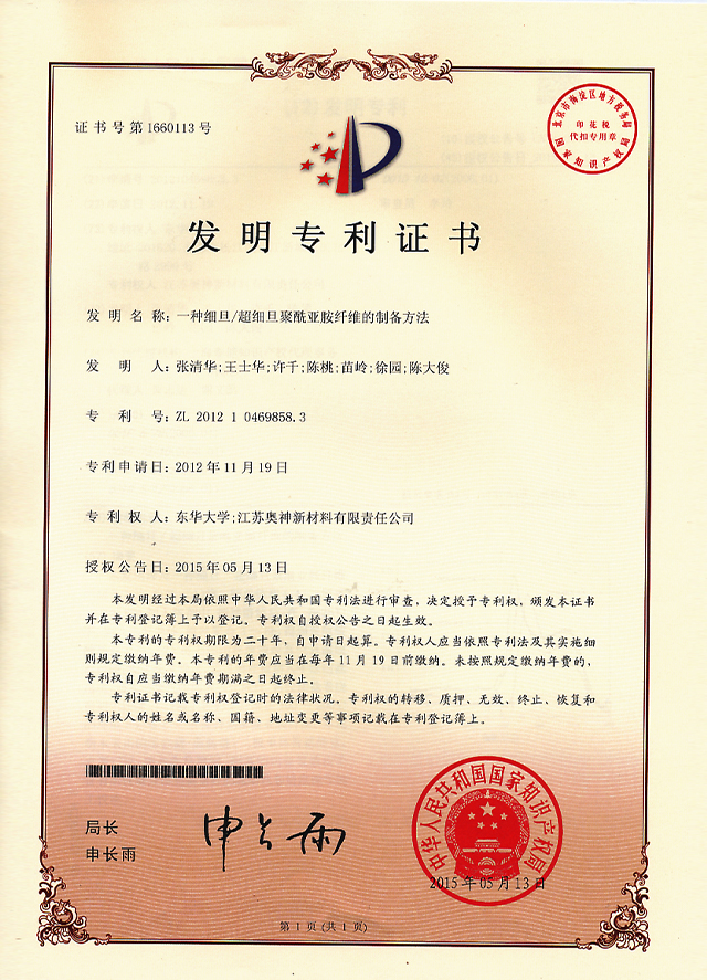 江蘇省聚酰亞胺纖維材料工程技術研究中心